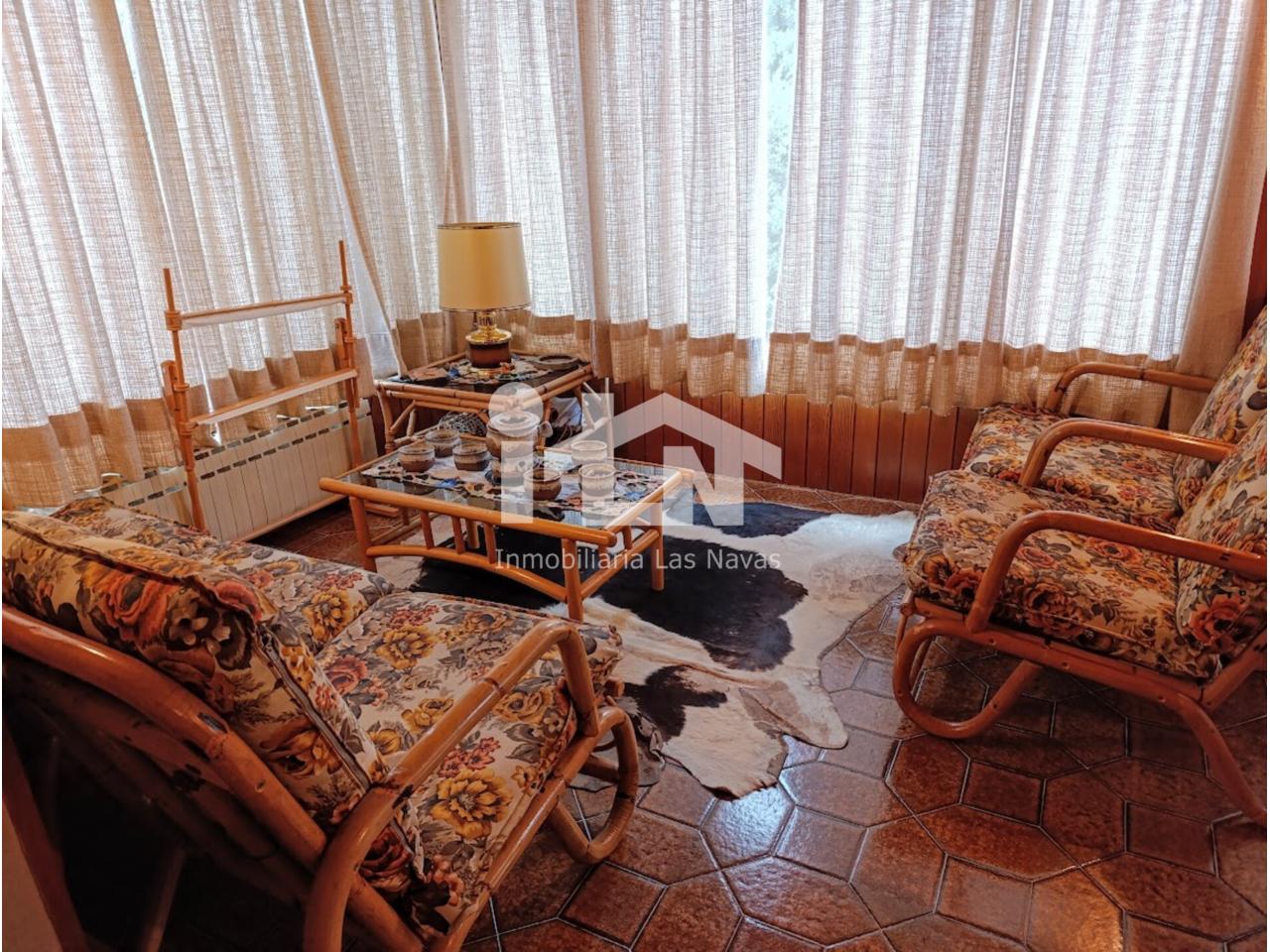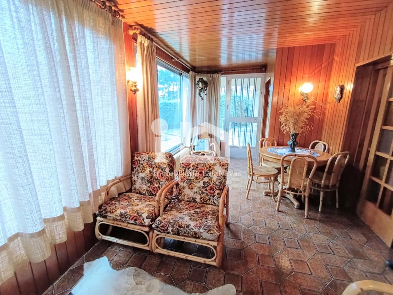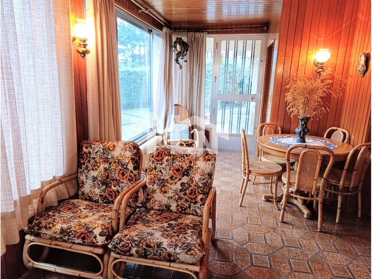 Dispone de seis dormitorios (cuatro dobles y dos individuales), dos baños completos y un aseo, además de un salón amplio con chimenea que aporta calidez y carácter a la vivienda. La cocina es independiente y en la entrada encontramos un agradable porche-terraza ideal para disfrutar del entorno. Entre sus calidades destacan la calefacción de gasoil, la carpintería exterior de aluminio, la carpintería interior de madera barnizada y los suelos de gres.